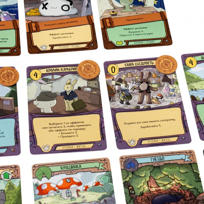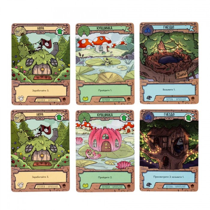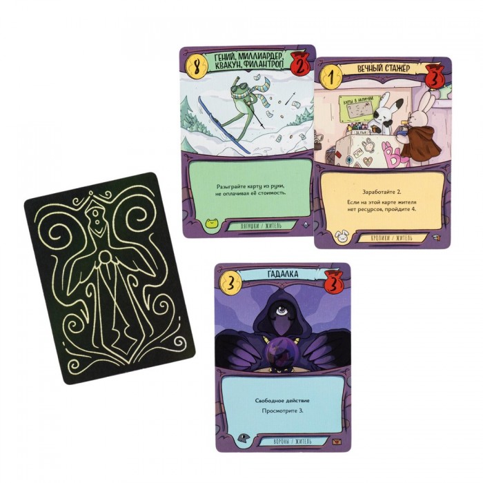 108 уникальных карт – три расы (вороны, лягушки, кролики)