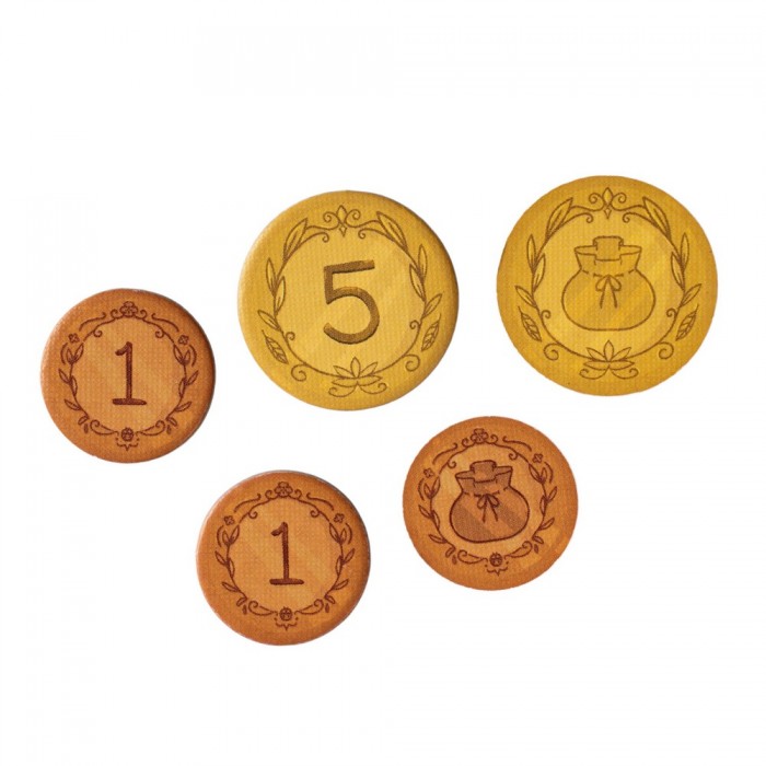 - 12 жетонов по 5 монет/ресурсов