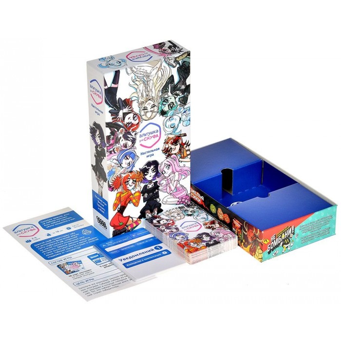Колода из 40 карт с альтушками разных типов и 9 карт победных уведомлений. Каждая альтушка — со своим характером, фразочками и стилем. Собирать их в комплекты — отдельное удовольствие.
