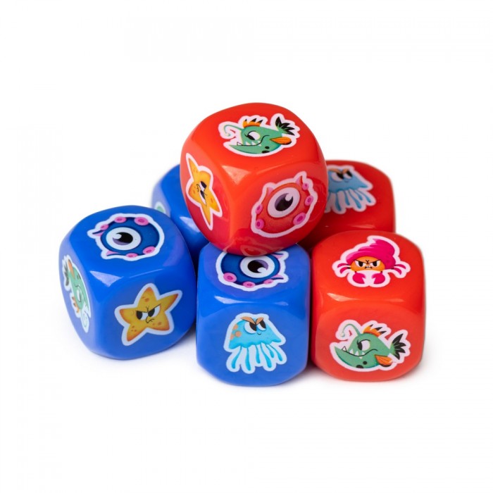 Каждый раунд игроки бросают кубики кракена. На гранях — символы, указывающие, какие щупальца и по каким дорожкам приближаются к кораблю. Щупальца ползут к борту с обеих сторон — красные справа, синие слева. По мере игры кубиков становится больше, и атаки усиливаются.