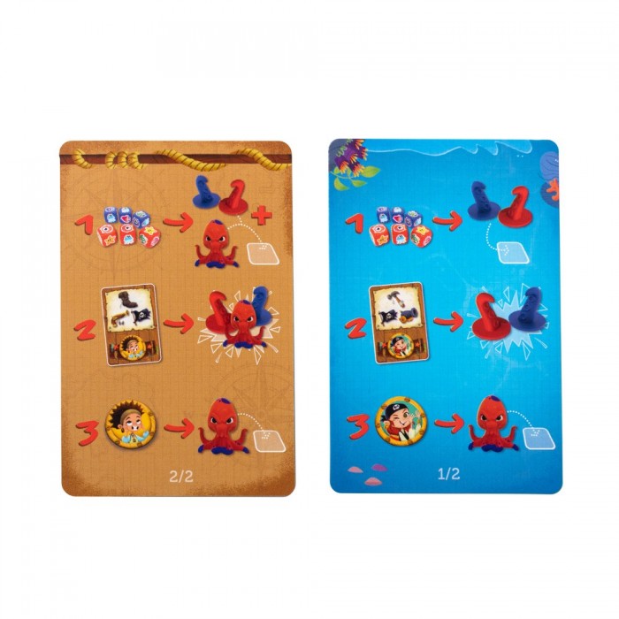 В начале партии каждый выбирает себе пирата — Астрид, Элен, Сэмюэля или Билли. У каждого есть уникальная суперспособность и набор действий для борьбы с чудовищем.