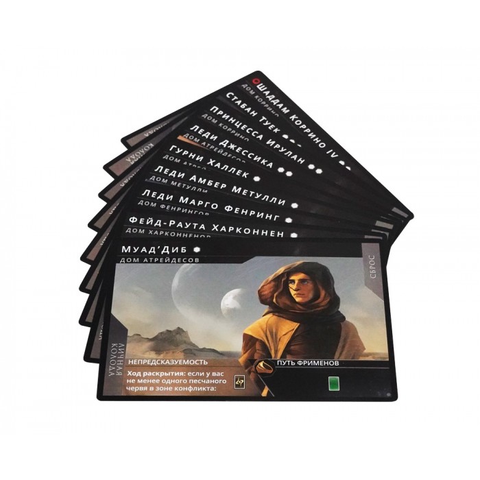 - 8 планшетов лидеров — возглавьте Дом Атрейдесов, Харконненов или других влиятельных игроков галактики