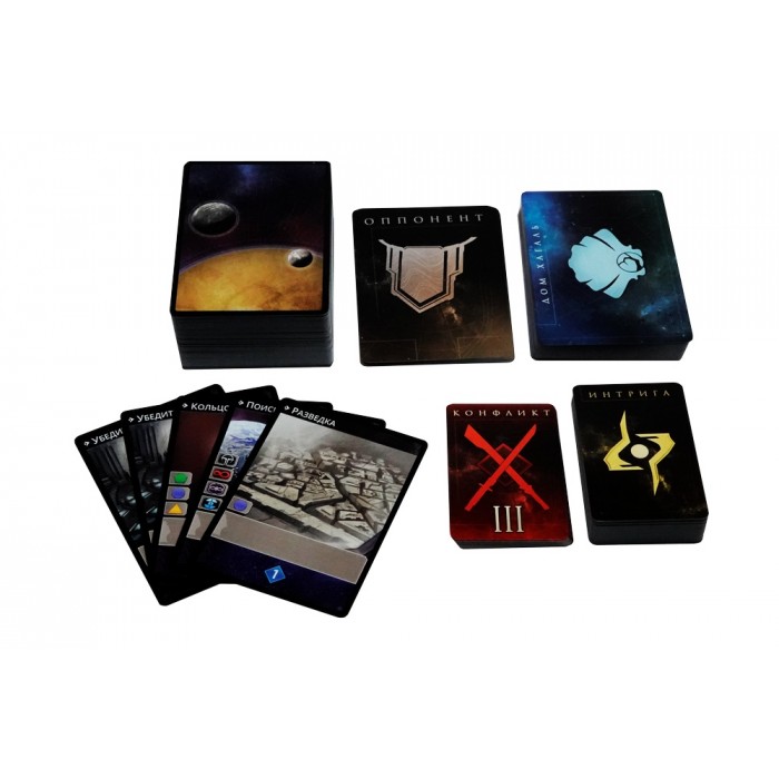 - 40 карт интриг — плетите заговоры, предавайте союзников, побеждайте хитростью