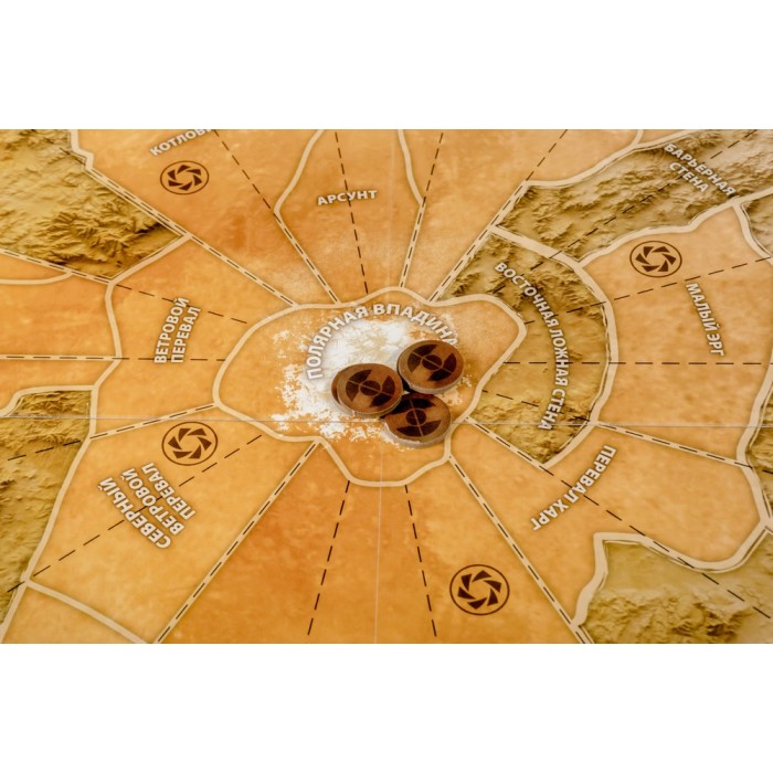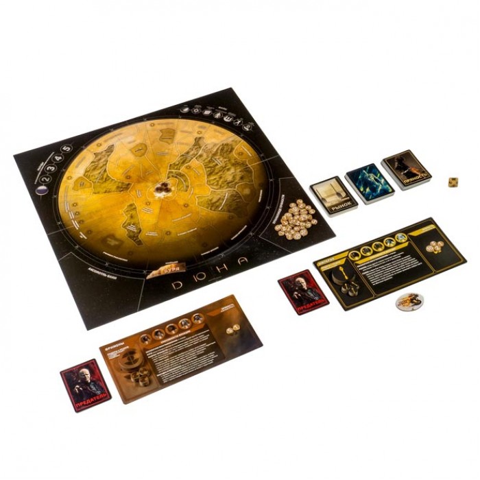 - 1 игровое поле — карта Арракиса с территориями, цитаделями и путями передвижения