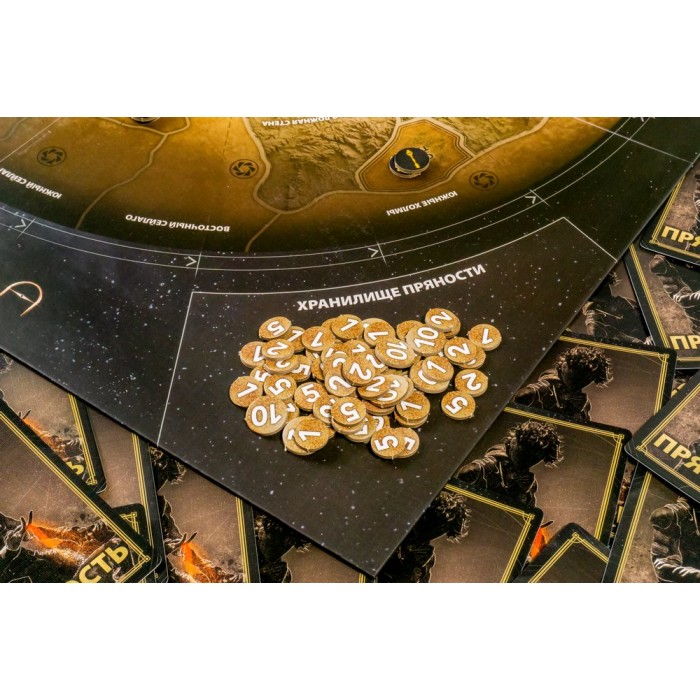 - 278 жетонов — войска, пряность, маркеры контроля и многое другое (да, мы их пересчитали дважды для уверенности)