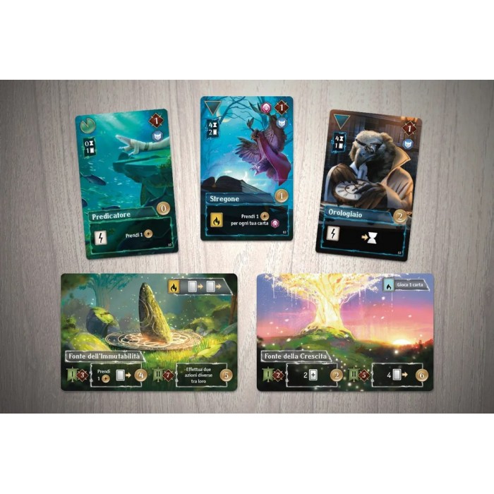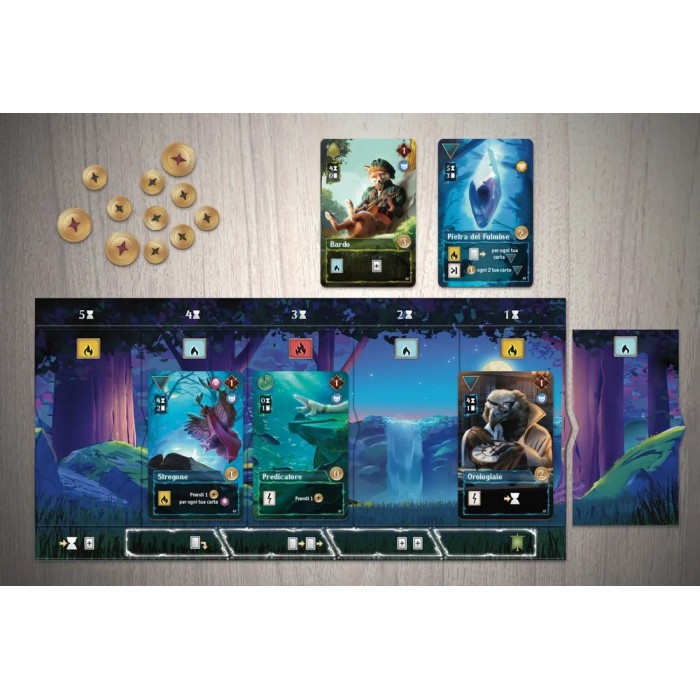 Но это только начало. Каждый жетон активирует определённый тип эффектов. А вы можете ускорять или замедлять движение жетонов, меняя темп партии и порядок срабатывания способностей. Время — ваш главный ресурс.