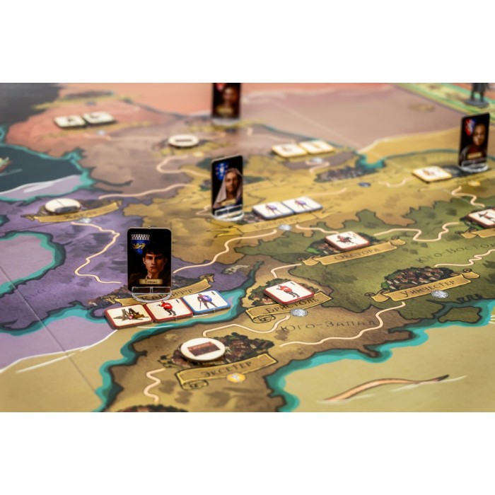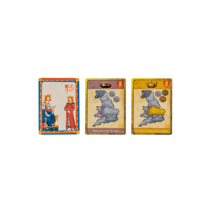На игровом поле раскинулась карта Англии с городами, дорогами и портами. Ваши лорды маршируют по ней, захватывают замки и мельницы, пополняют казну налогами и лениво переписываются с союзниками через почтовых голубей. Всё как в настоящем средневековье, только без чумы - её заменяют карты бедствий.