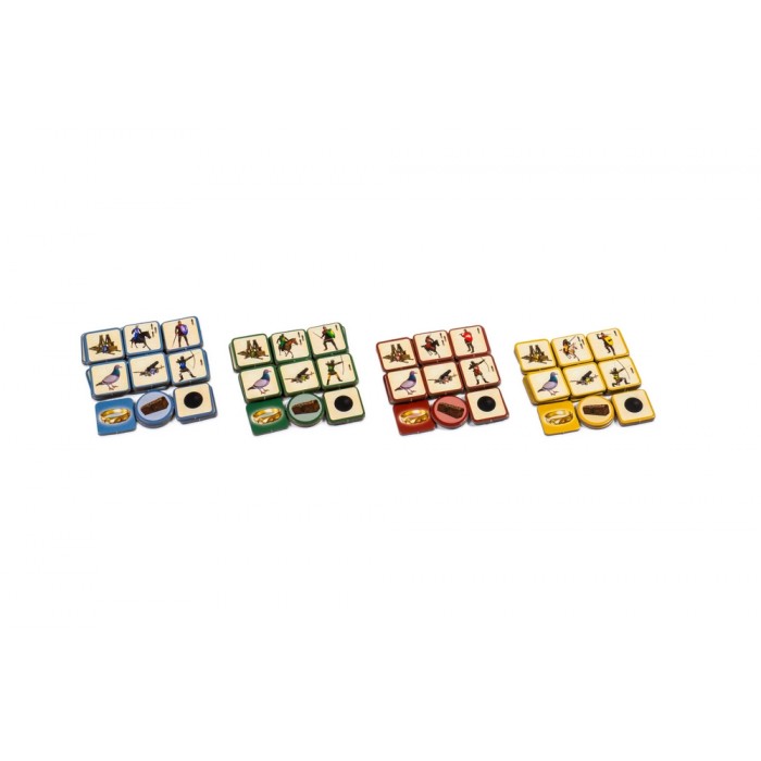 - 12 жетонов почтовых голубей (по 3 на игрока)