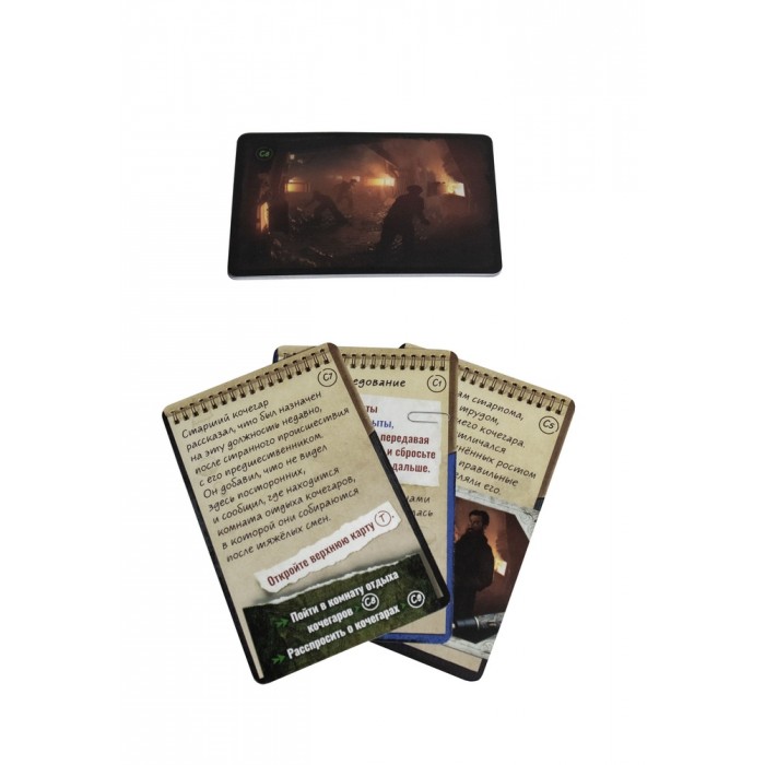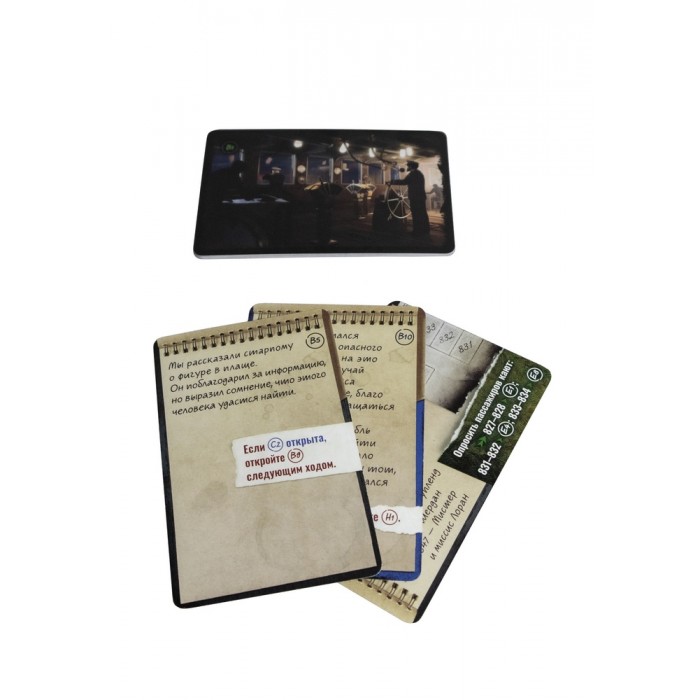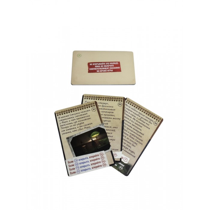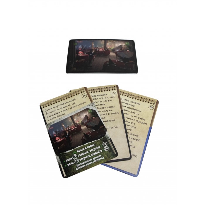 В коробке: компактная колода карт — всё необходимое для полноценного расследования на 60–90 минут.