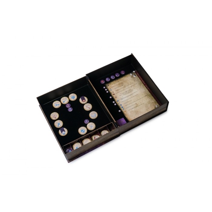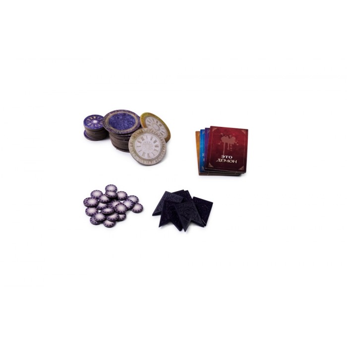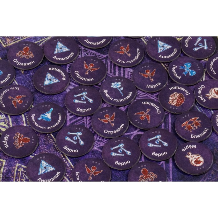 Компоненты, от которых захватывает дух. Чего стоит один Гримуар – это не папка с бумажками, а полноценная реликвия с подставкой, в которой Сказочник хранит все роли и статусы игроков. Металлические зажимы, пластиковые обложки, жетоны саванов для погибших, фирменный мешочек – это издание, которое хочется положить на полку и показывать гостям.