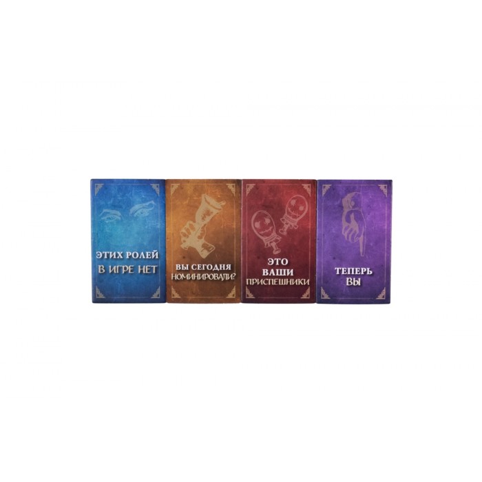 • 20 листов ролей, 25 жетонов ролей, 16 меток набора