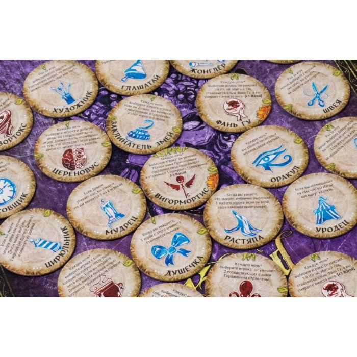 Каждый игрок получает уникальную роль со своей особой способностью. Прорицатель может проверять, кто демон. Библиотекарь знает, что один из трёх конкретных игроков – изгой. Отшельник не знает о своей роли ничего, даже сам. Матрос пьёт ром и не помнит, что делал вчера. Шут радуется, когда его казнят. Алхимик – это вообще отдельная история. И таких ролей здесь более 160.