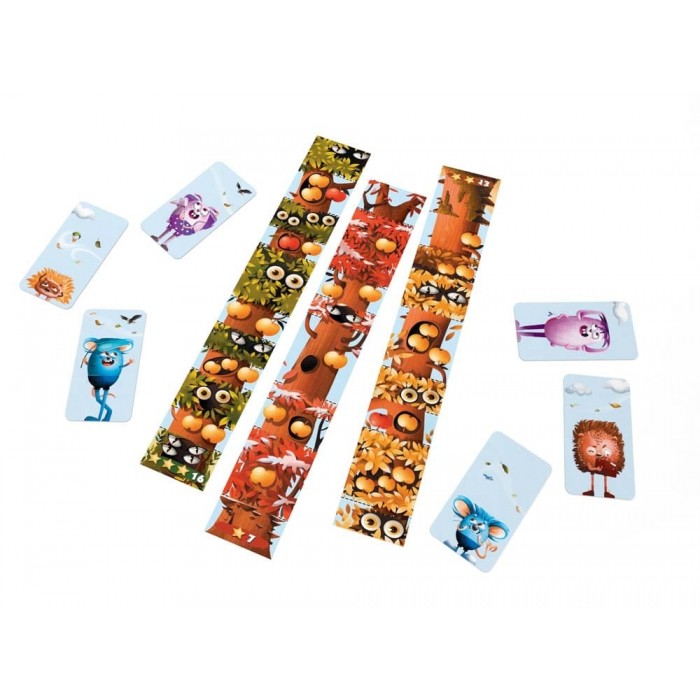 В начале раунда каждый игрок получает четыре карты с мышками, зайчиками и ёжиками. Каждый ход вы выкладываете одну карту — либо добавляете к существующей башне, либо начинаете новую. Когда у всех будет по три башни из девяти карт — начинается сбор урожая!