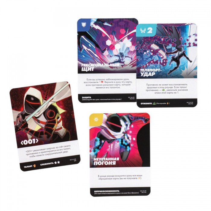 Уникальные герои. Каждый персонаж обладает собственной колодой из 15 карт и особыми способностями. Вы можете атаковать, защищаться, использовать хитрые манёвры или мощные спецприёмы. Комбинируйте карты, предугадывайте действия противника и выбирайте правильный момент для решающего удара.