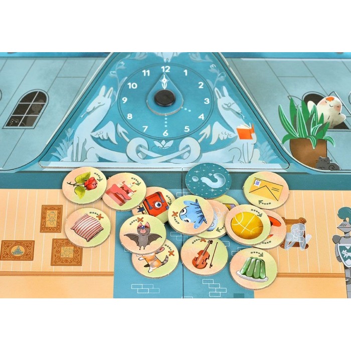 Каждый предмет уникален: одни можно метнуть через весь дом, другие требуют бережного обращения. Когда ход возвращается к первому игроку — часы отбивают ещё один час. Успейте до полуночи!