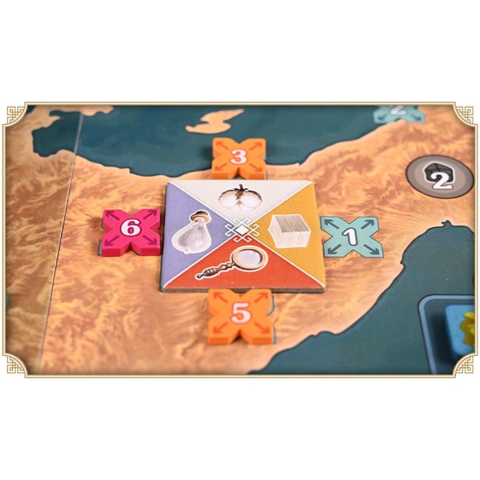 Основное противостояние разворачивается на карте Японии: поставляйте товары в регионы, вытесняйте жетоны конкурентов и трижды за игру получайте победные очки за своё влияние. Следите за противниками — и не давайте следить за собой.