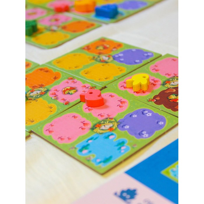 Каждый ход прост: выложите жетон сада, расширяя общее пространство. Если выполнены условия — заселите новых обитателей. Колибри прилетают к цветам, пчёлы находят свои места, а загадочные существа прячутся под листвой и грибами. Собирайте фишки обитателей — в конце игры они принесут победные очки.