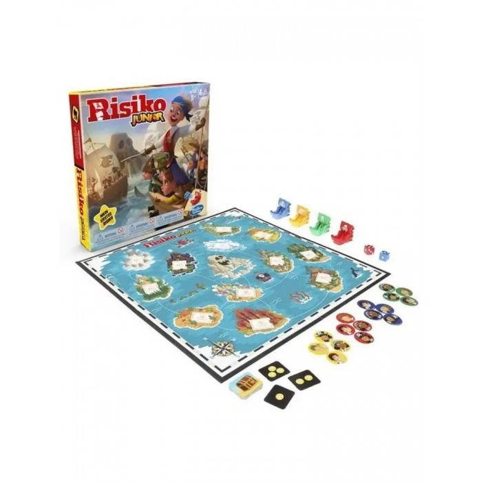 «Риск Джуниор» от Hasbro — это детская версия легендарной стратегической игры, адаптированная для самых маленьких завоевателей. Вместо карты мира — архипелаг пиратских островов. Вместо армий — отряды весёлых пиратов. Вместо многочасовых баталий — динамичные партии меньше чем за полчаса.