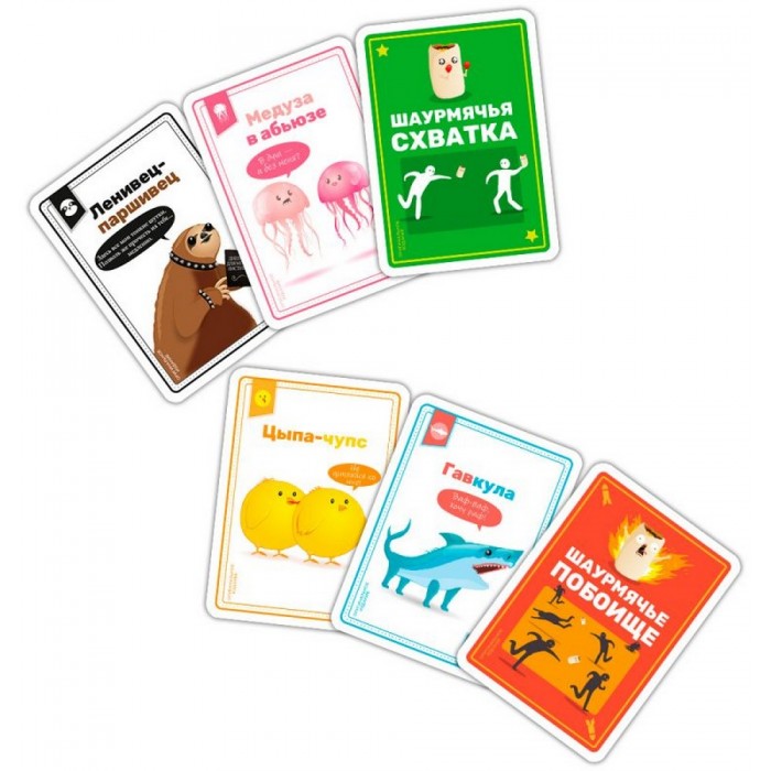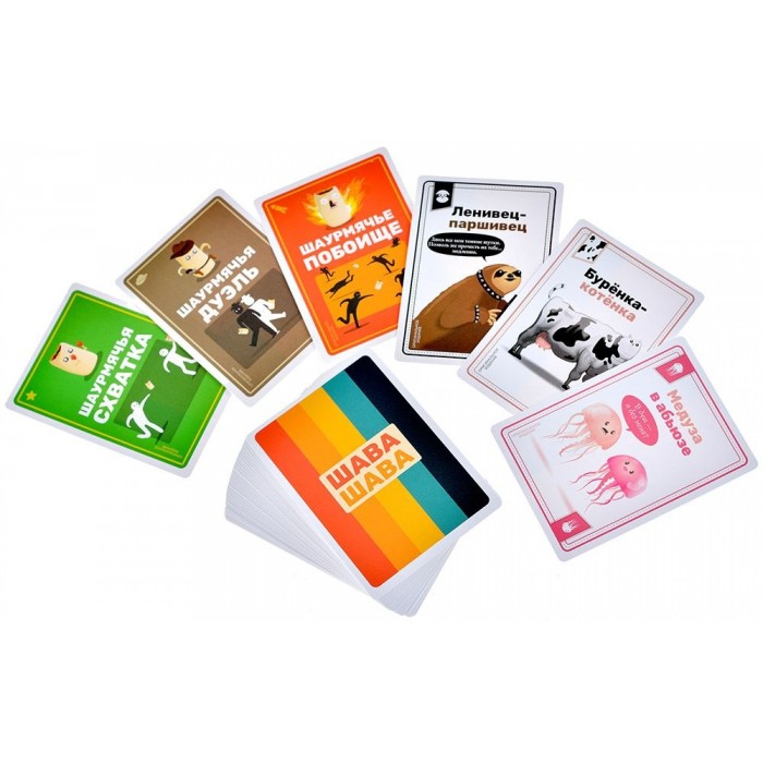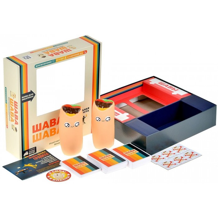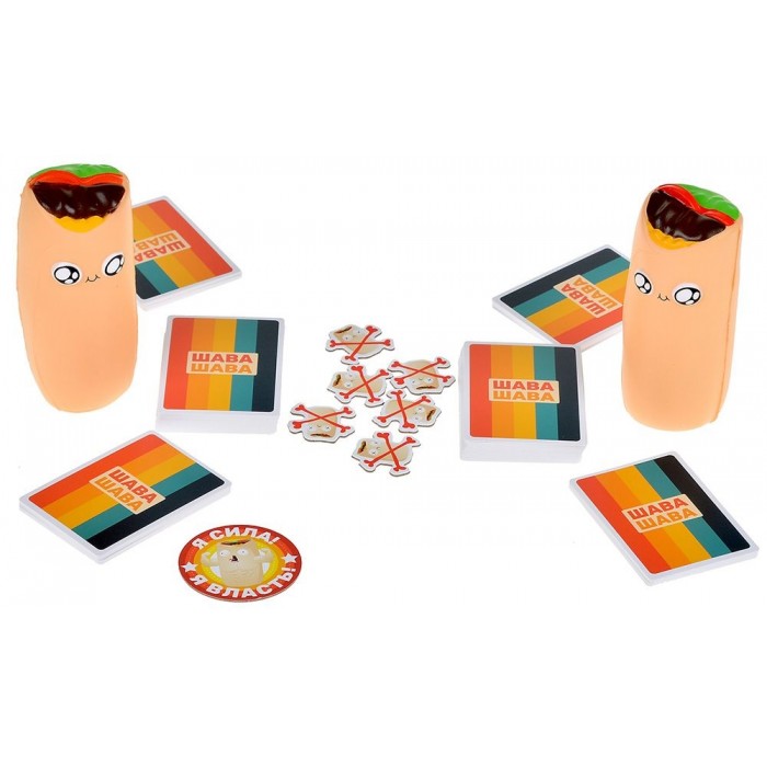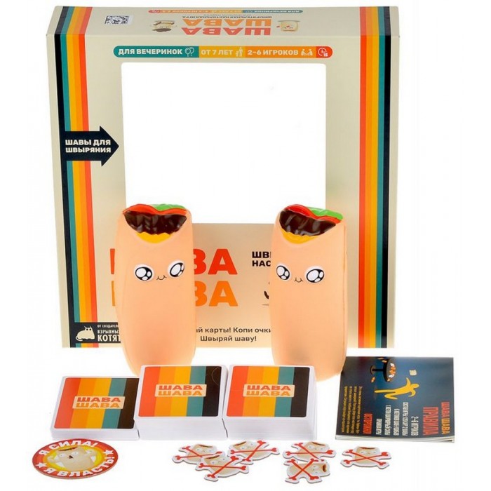 «Шава Шава» — это новая сумасшедшая игра от создателей «Взрывных котят». Здесь вам предстоит собирать команду шаурменов, обмениваться картами с соседями и... уворачиваться от летящих в вас мягких шаурм. Да-да, в коробке лежат две плюшевые шавы, которые только и ждут момента, чтобы прилететь кому-нибудь в лицо.