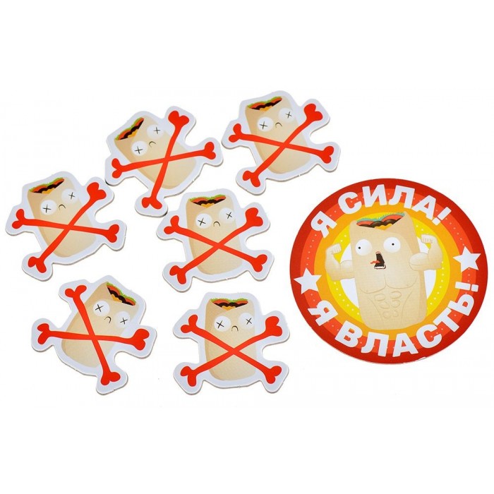 А теперь самое вкусное. Если собрали три одинаковые карты сражений — объявляете битву! Все хватают шавы со стола и швыряют друг в друга. Кому прилетело — получает жетон шав-ушиба и минус одно очко. Шавы мягкие, ничего не пачкают и не травмируют (но в голову лучше не целиться, договорились?).