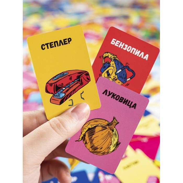 270 карт штук. Предметы, животные, еда, транспорт, абстракции — на любой вкус. Плюс 30 промокарт из кино для фанатов.