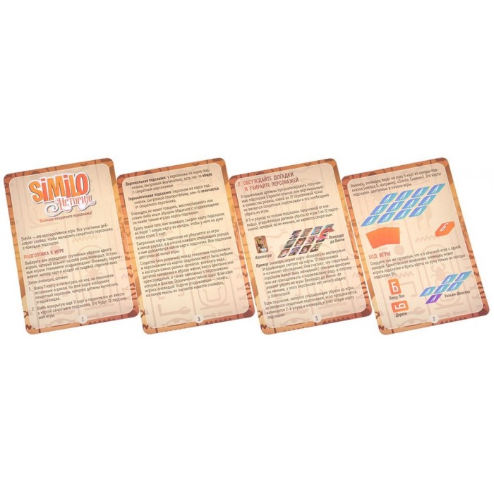 «Similo: История» — кооперативная игра на ассоциации и дедукцию. Один игрок знает, какой исторический персонаж загадан, и даёт подсказки картами. Остальные пытаются понять логику и убрать лишних со стола. Ошиблись с главным героем — проиграли все вместе.