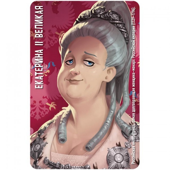 На столе раскладываются 12 карт с историческими личностями. Ведущий втайне выбирает одну — это секретный персонаж. Каждый раунд ведущий выкладывает карту из руки: вертикально — если у загаданной личности есть что-то общее с изображённой, горизонтально — если наоборот.