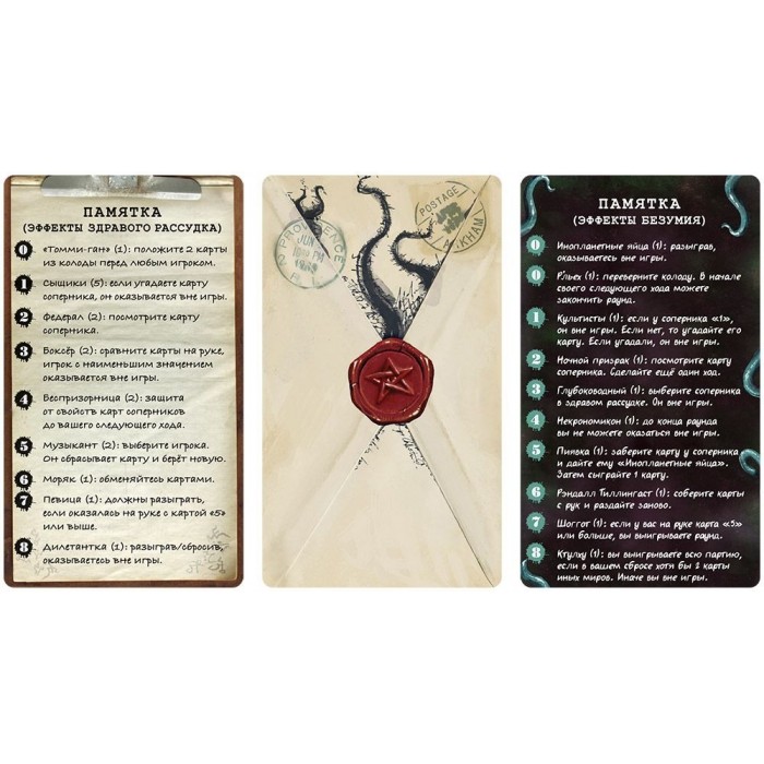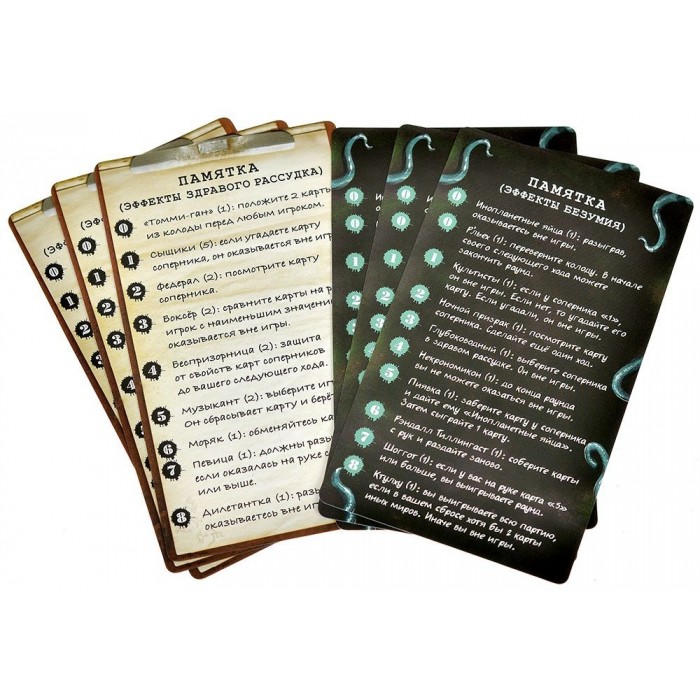 - Проверка рассудка — если вы безумны, в начале хода раскройте карты из колоды. Попалось нечто потустороннее? Вы выбываете из раунда!