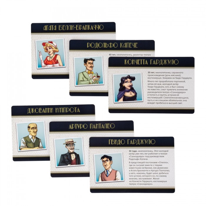 Для любителей детективов и театральной драмы. Для компаний, которые ценят игры с блефом и скрытой информацией. Для тех, кто хочет не просто решить головоломку, а прожить историю. Для поклонников комиссара Риччарди и тех, кто готов открыть для себя этот мир.