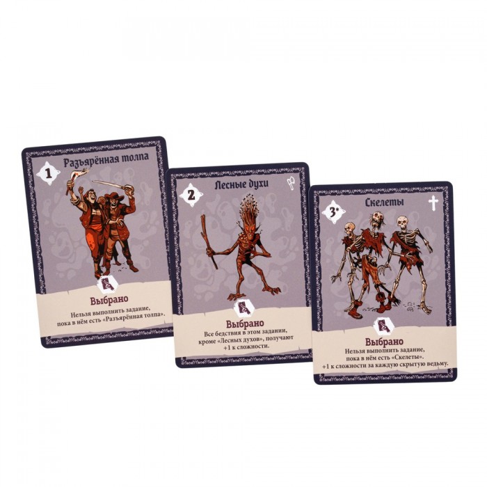 Каждый раунд вам нужно выполнить одну из миссий — победить монстра, снять проклятие, защитить жителей. Любую ведьму можно разыграть скрытно или раскрыто. Разоблачённые чародейки дают больше магической силы и владеют могущественными заклинаниями. Но после этого они отправятся в темницу за использование магии — их помощь доступна лишь однажды.